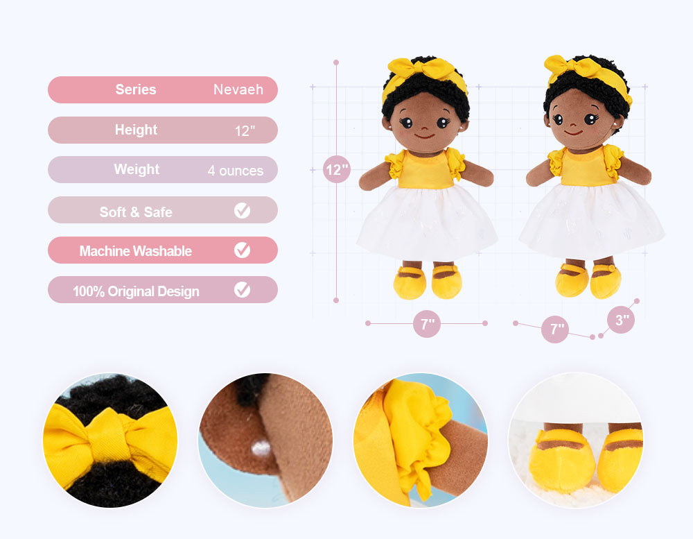 Personalized Yellow Deep Skin Tone Plush Baby Girl Doll